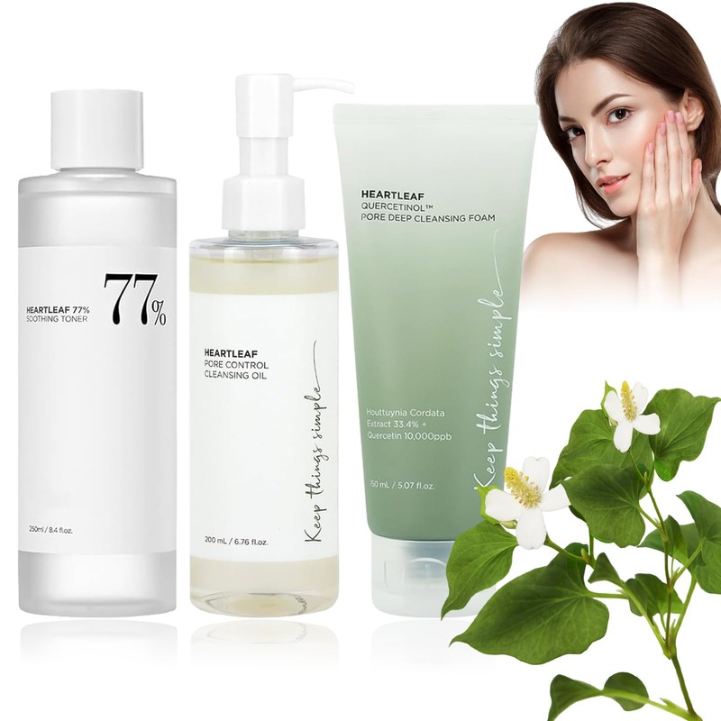 Heartleaf 77% Soothing Toner 250ml | Heartleaf Pore Cleansing Foam 150ml | Pore Cleansing Oil 200ml | Quercetin Heartleaf Facial Cleanser Reduce Pore Toner Deep Cleanseing Schiuma Detergente