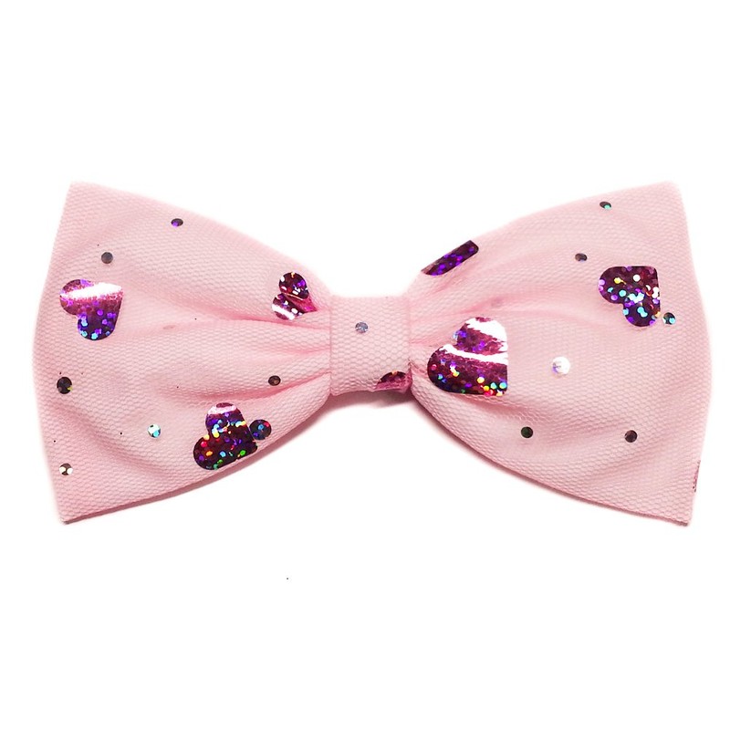 "Hearts" Lover's Hair Bow Collection (Alligator Clip, Pink Foil Hearts)