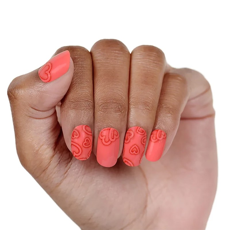 - Make hearts skip a beat with Heartthrob, a creamy, juicy coral color with playful heart-shaped designs.