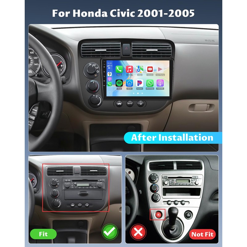 - 【Wireless CarPlay & Android Auto】- Connect your iPhone or Android phone wirelessly to this touch screen radio for Honda Civic. Access maps, music, calls, and messages on the 9 inch touch screen. Stay connected safely with seamless smartphone integration