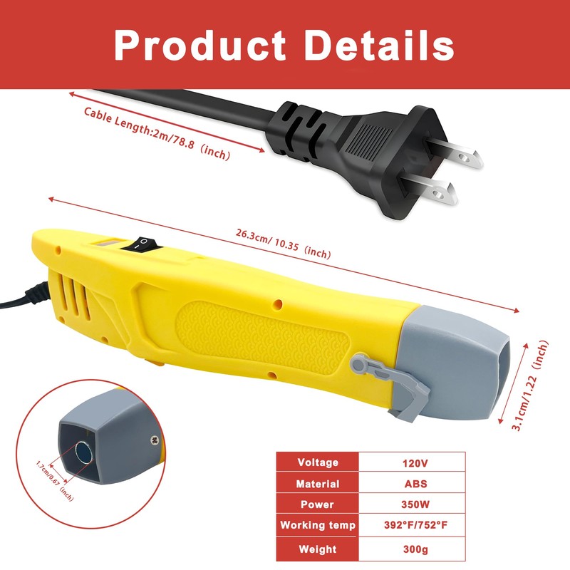 - Versatile Applications: This yellow small heat gun for crafting heating shrink tubing, embossing, drying paint, production of heat shrinkable sheet,soft pottery stereotypes, shrinking, shrink wrapping, or making small repairs. 6.56ft long cable helps you do crafting more conveniently