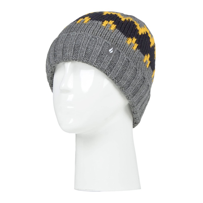 HEAT HOLDERS - Boys' Winter Knitted Plush Hat, Pebble Melange / Gold / Navy