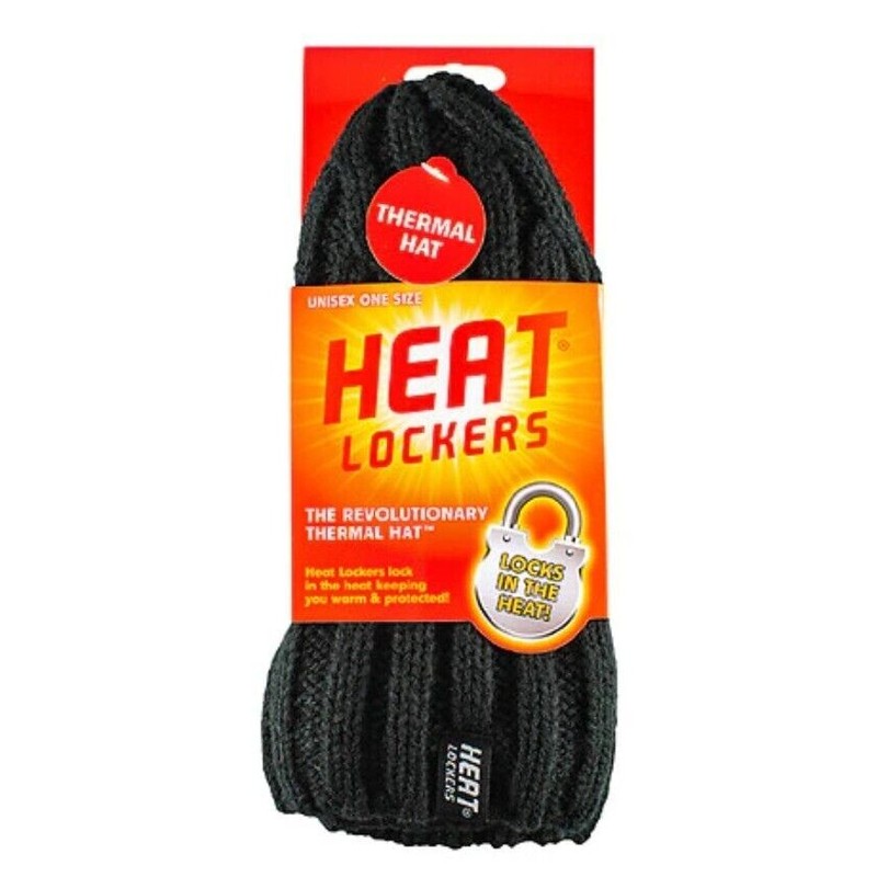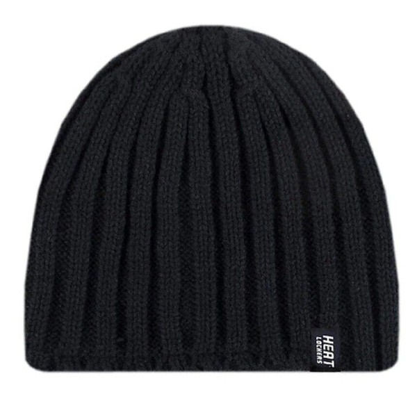 Heat Lockers Men's Black Insulation Yarn Thermal Beanie Hats Cap - One Size