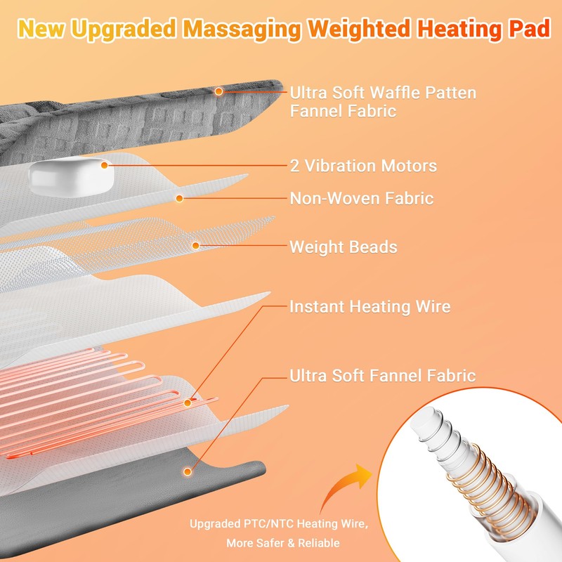Flexible and Reliable: The heating pad with massager is ideal for relieving muscle tension. It is quieter than other heating pads, allowing you to enjoy a cozy atmosphere anywhere. For safety reasons, please avoid using it at the same time with other heating devices.