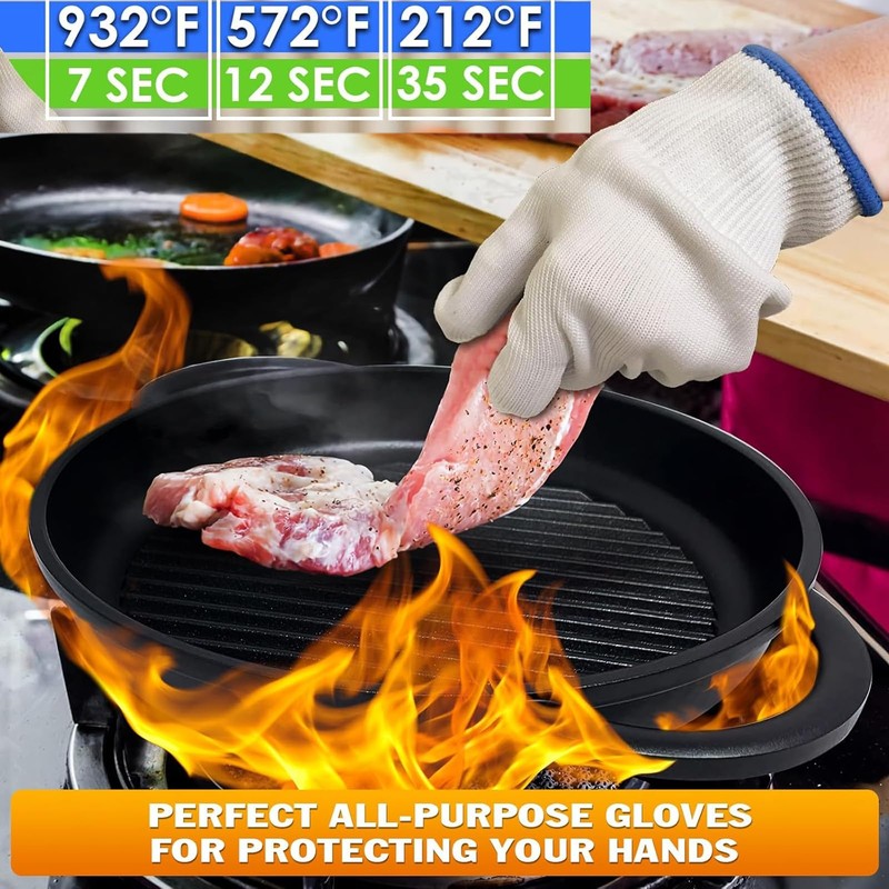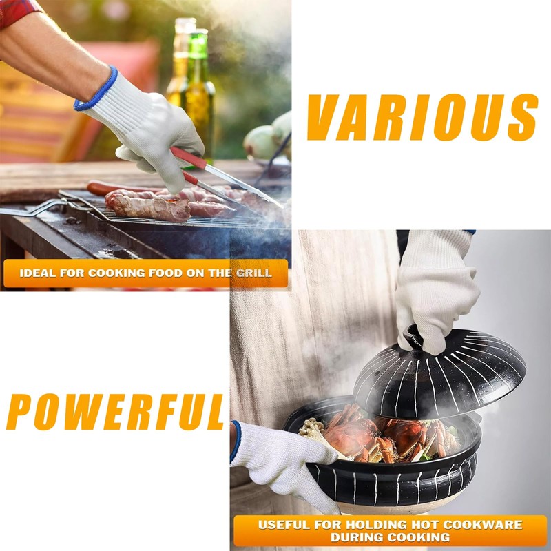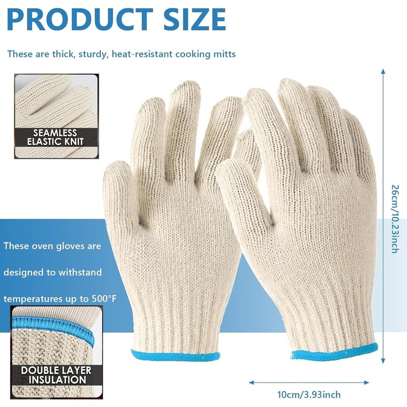 - MULTI-PURPOSE:Our high temperature resistant advanced oven gloves can be easily used as barbecue gloves, heat insulation pads and oven gloves, or as heating gloves for cooking, safety gloves, protective gloves, cotton work gloves, etc
