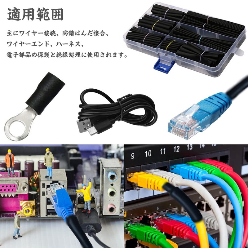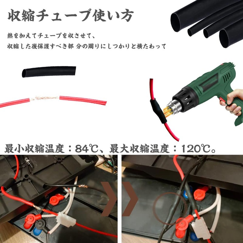 - A set of shrink tubes in various sizes, mainly used for wire connections, rust resistant solder joints, harness and wire terminal treatment, insulation work, wire reinforcement, wire repair, electrical components protection and insulation