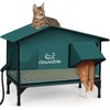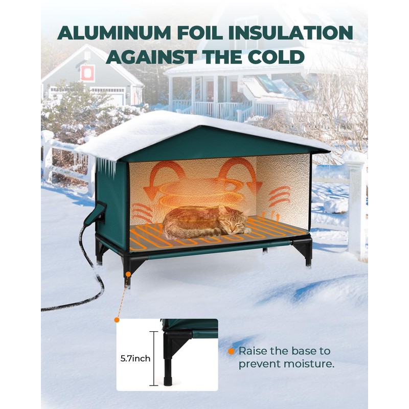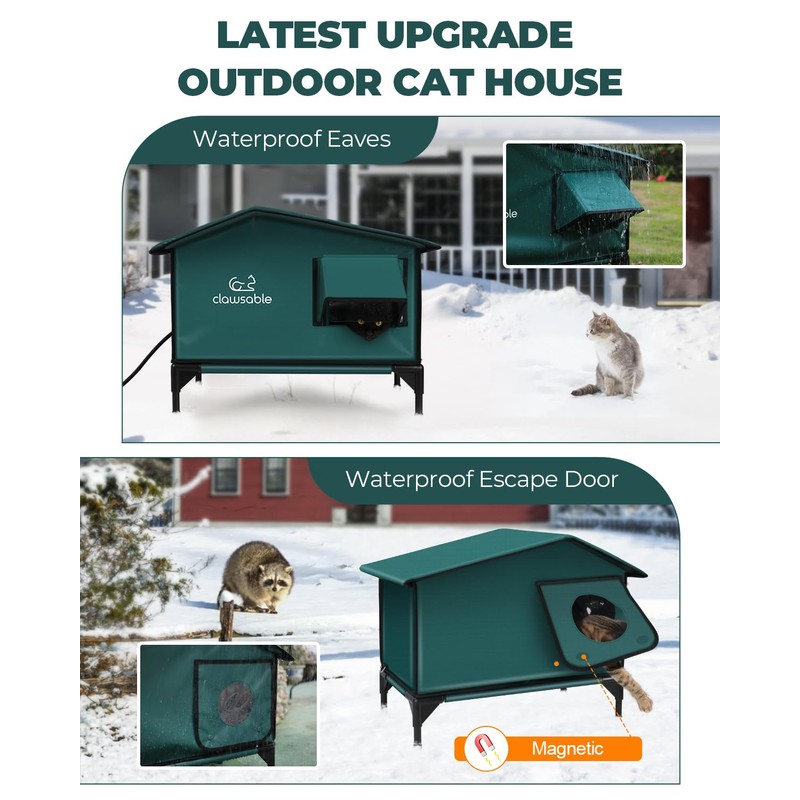 Heated Cat House for Outside,Extremely Weatherproof&Insulated in Winter,Elevated Outdoor Cat Shelter with Waterproof Eaves&Escape Door for Feral Stray Barn Cat(Dark Green,M:24.8" Lx21.4 Wx13.4 Th)