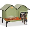 Heated Cat House for Outside in Winter Insulated Elevated Heated Outdoor Cat House Weatherproof, Escape Door, Large Feral Cat Shelter Kitty Bed for 2~3 Cats Stray Barn Kitty, Easy Assembly