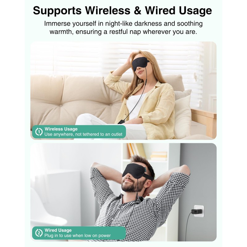 - 【Dual-Use Heated Eye Mask】By connecting to an external controller, it can be used both wired and wirelessly It also comes with a Type-C cable, not only for charging but also for wired connections to any power source—computer, power bank, or outlet—for continuous use. Ideal for relieving eye strain and dryness, it provides comfort whether you're traveling, at home, or in the office
