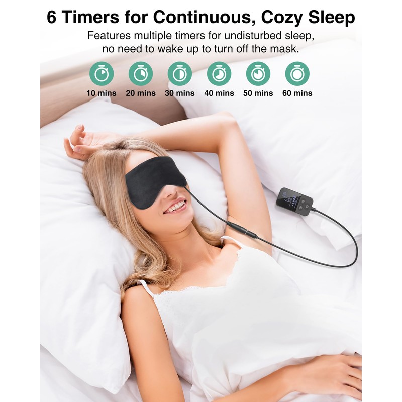 - 【Effective Light Blocking & 6 Timers】This electric eye mask ensures complete darkness by efficiently blocking external light with its wide design. Equipped with 6 adjustable timers (ranging from 10 to 60 minutes), it is perfect for uninterrupted rest, travel, or meditation without the hassle of waking up to turn off the mask. Ideal for meditation or improving sleep quality, this eye mask provides the perfect blend of darkness and comfort