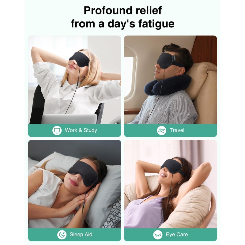 - 【External Controller + 2500mAh High-Capacity Battery】 Effortlessly control this sleep eye mask using an external controller, even while wearing it. Its high-capacity 2500mAh battery ensures a comfortable, no-pressure fit and supports long-lasting use, lasting from 150 to 390 minutes on a full charge. Perfect for on-the-go use, each session is best kept between 15 and 30 minutes for optimal comfort and effectiveness