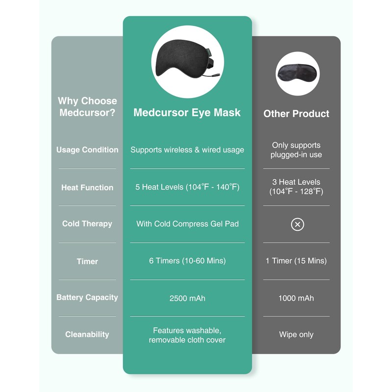 Heated Eye Mask - Medcursor Rechargeable Electric Eye Mask for Dry Eyes, with External Controller, 2500 mAh Large Battery & Washable Cover, Blackout Eye Mask for Sleeping, Skincare, Relax Eye Fatigue