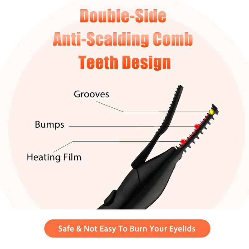 - Long-lasting curls: heated eyelash curler curved brush head combines traditional eyelash curler with an innovative eyelash comb for a 360°, with double-sided long and short comb teeth, quick shaping and long-lasting curling