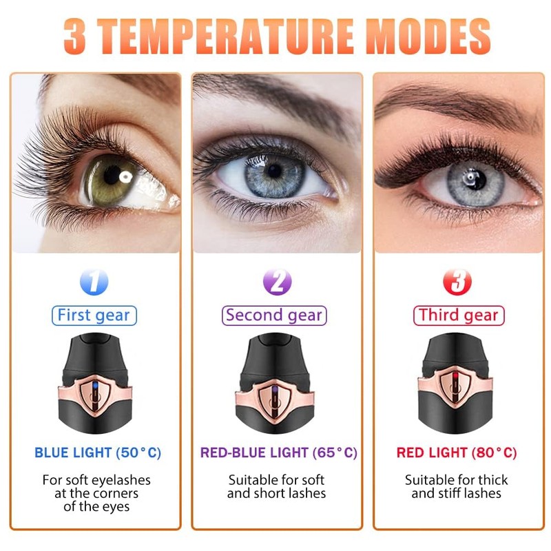 - Quick heating in 10 seconds: rechargeable electric eyelash brush uses nickel-chrome wire as a heating element for heat conduction, heats up within 10 seconds and ensures long-lasting swing in seconds, the heated eyelash curler has 3 different adjustable temperatures ensures effect of curling