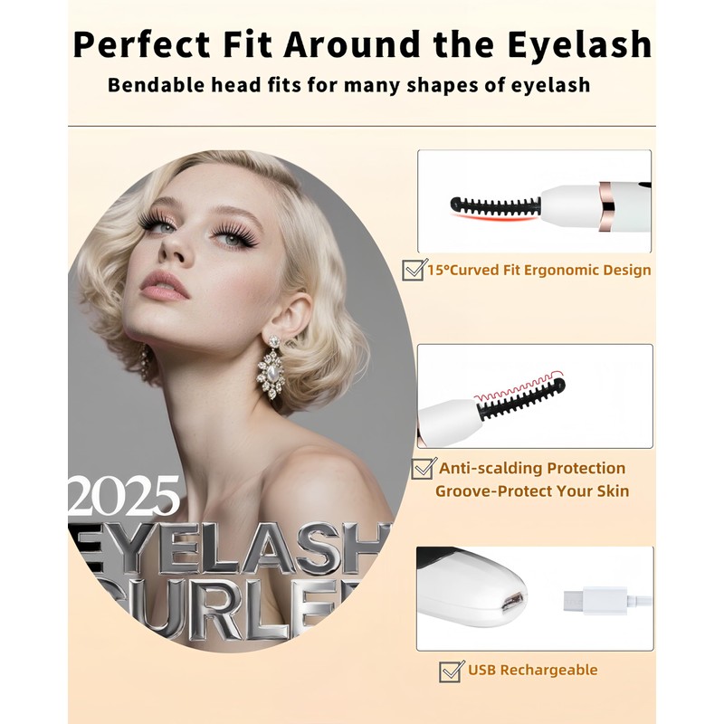- Safe anti-scalding design: The heated eyelash curler features a delicate brush head and a 15° anti-burn comb for a perfect lash fit. Its thermal protection slot keeps heat away from your skin, ensuring safe, quick, and lasting results