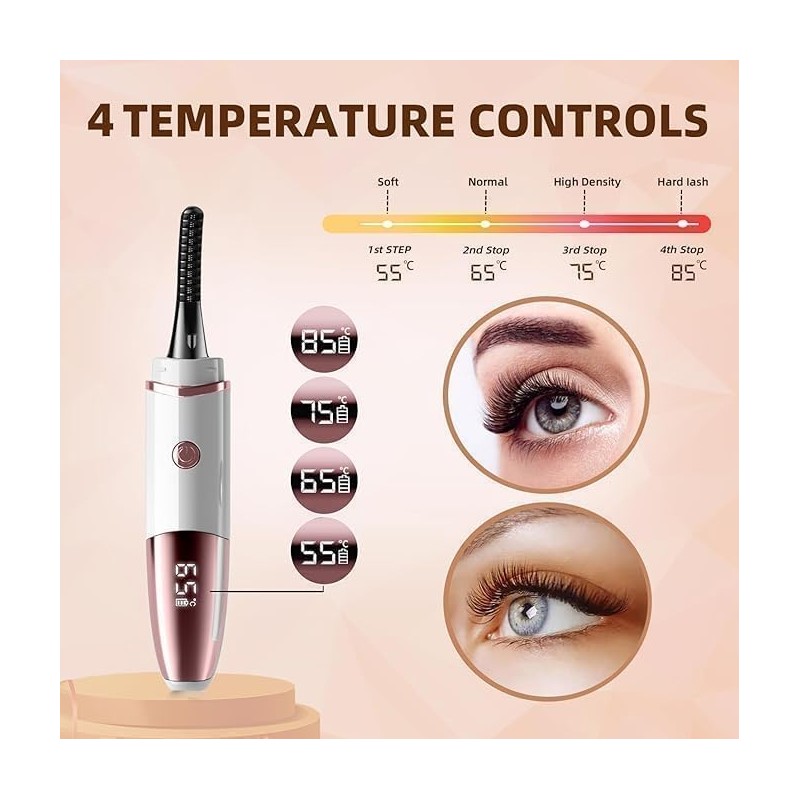 heated eyelash curler is rechargeable, so if you're looking for a reliable, efficient, and convenient way to get stunning, natural-looking curls that last all day, the Electric Heated Lash Curler is the product you've been searching for!