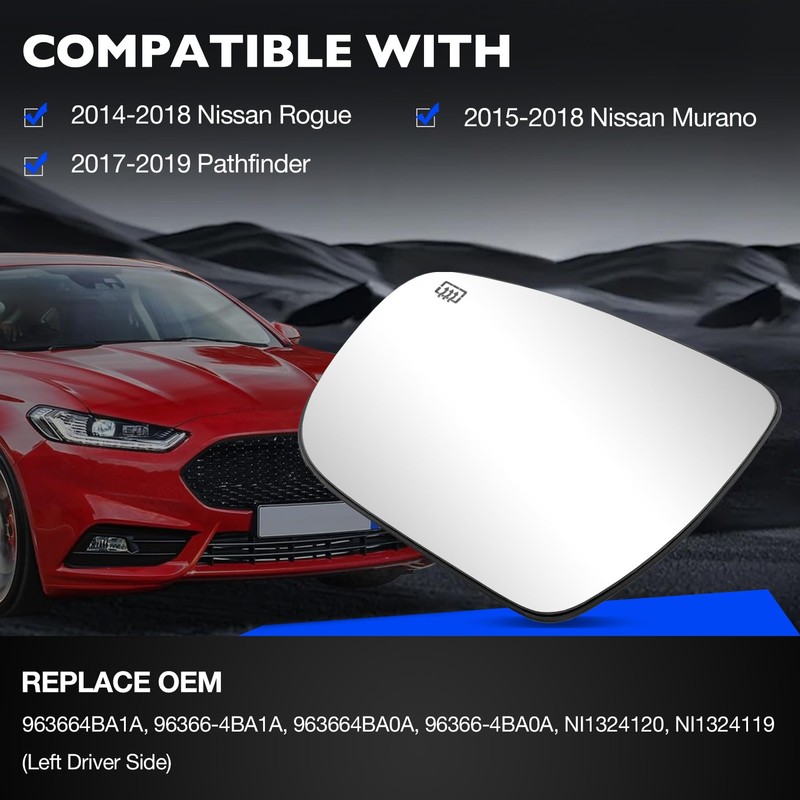 - đăPrecise CompatibilityăThe power heated side convex mirror tailored to fit 2014-2018 nissan rogue, 2015-2018 nissan murano, 2017-2019 pathfinder, ensuring a stable fit and hassle-free installation