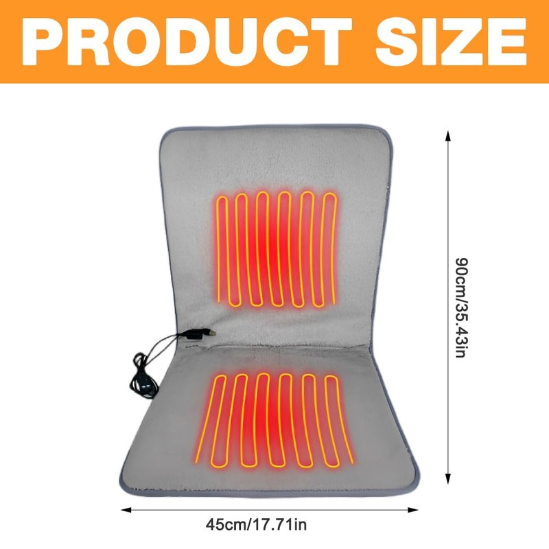 - 🔥【Large-Area Heating Design】The heated chair pad measures 43×90 cm / 17 inches × 35.5 inches, with a heating area of 2x15x30 cm, providing warmth and comfort for your back, buttocks, and thighs. It helps dispel the cold and promote blood circulation. Enjoy the warmth of the seat immediately.This heated seat cushion provides soothing warmth for tired and sore muscles, helping you stay warm and comfortable even in the coldest winter months. It is versatile and can be used in multiple ways, making it ideal for office workers, the elderly, and sports enthusiasts