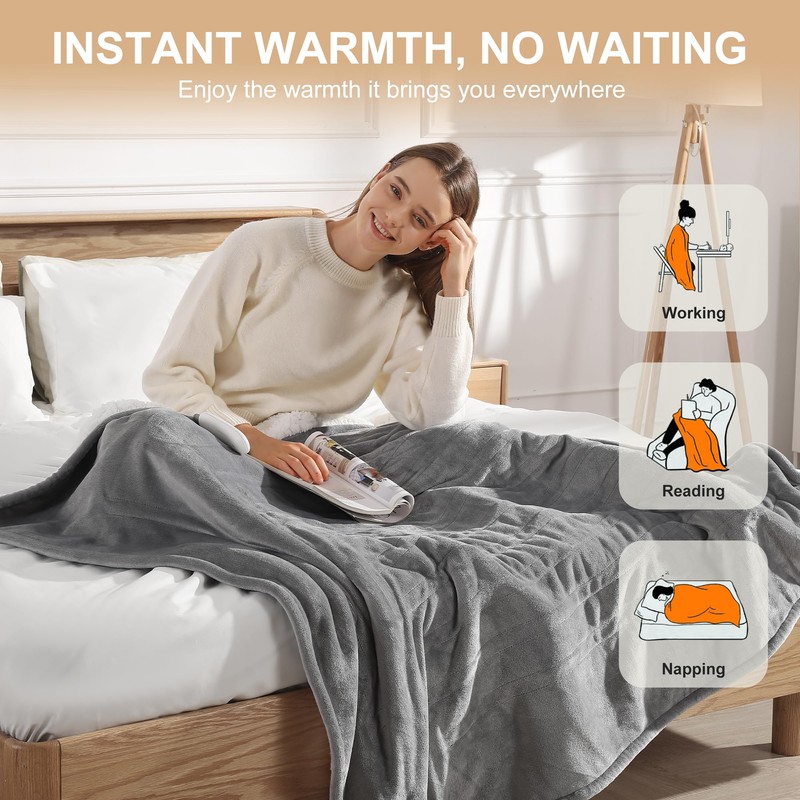 Heated Throw Blanket Electric Blanket 50X60in - Fast Heating Blanket Ultra Soft Warming Blankets for Adults with 5 Heat Levels & 4 Hrs Timer, Machine Washable, Office Warm Blanket for Winter(Gray)