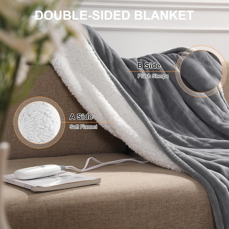 - Safety & Certification: ETL certified of higher safety standard with advanced NTC overheating protection, our heated blanket is equipped with default 4-hour auto shut-off, prevents it from overheating so that you can enjoy warmth with peace of mind.