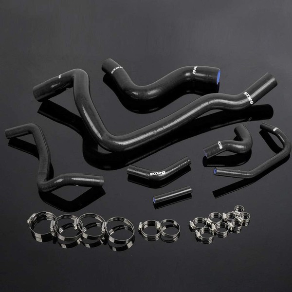 Heater Silicone Hose & Radiator Coolant Kit Fit Volvo 97 850 T-5/98-00 S70/98-04 V70 (Black -With Clamp Set)