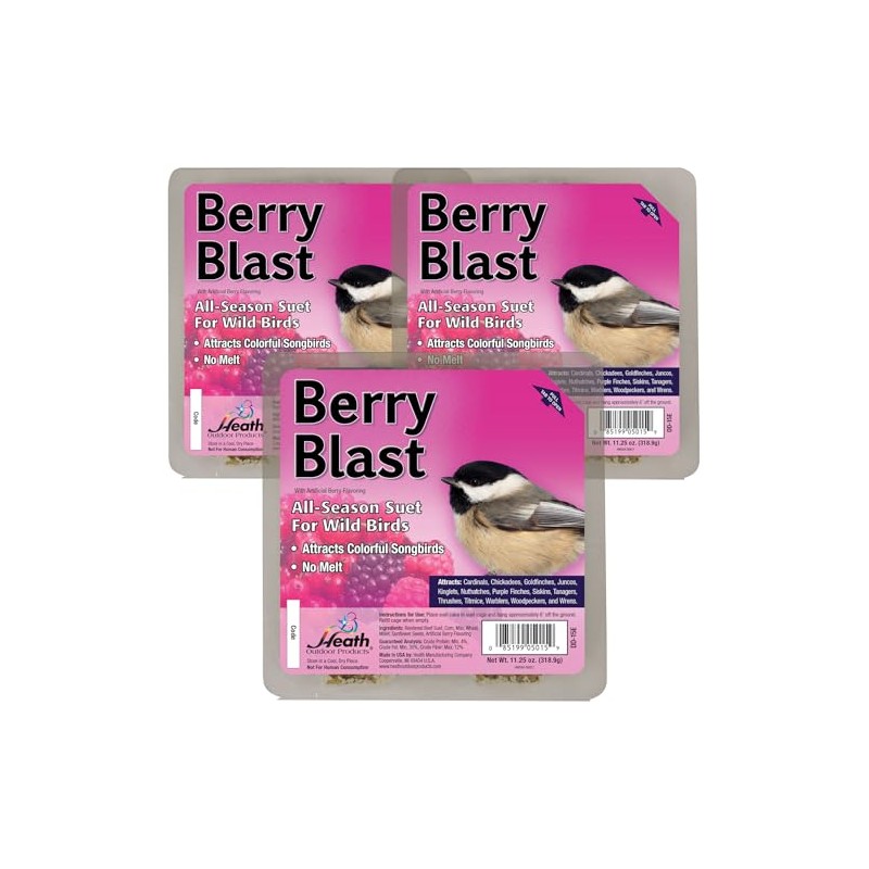 Heath Berry Blast Suet Cakes Sample Pack, Contains 3 Suet Cakes, Try It, Your Birds Will Love it, for Woodpeckers, Cardinals, Siskins, Sparrows, Finchs & Many More Wild Bird Species