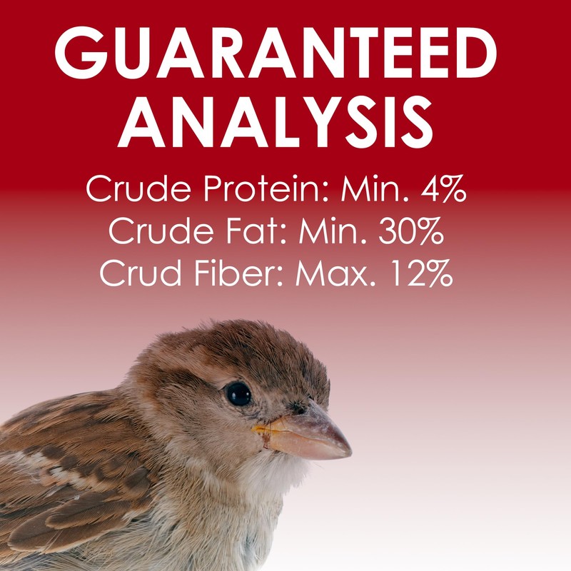 No melt all-season suet cake. Blended with suet and cranberry pieces. Attracts these colorful songbirds: Cardinals, Chickadees, Goldfinches, Juncos, Kinglets, Nuthatches, Purple Finches, Siskins, Tanagers, Thrushes, Titmice, Warblers, Woodpeckers and Wrens. Guaranteed fresh. Not for human consumption. Store in a cool, dry place.