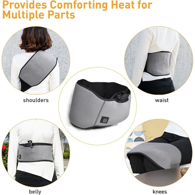 - Portable and Rechargeable :Heating pad for back pain relief equipped a 10000mAh battery bank and built-in pocket for it. USB connector allows you to plug in anywhere such as a computer,USB wall adapter,car USB port,or power bank.Cordless heating pad can relieve menstrual cramps and muscle soreness anywhere and anytime,no need to be stuck in one place.