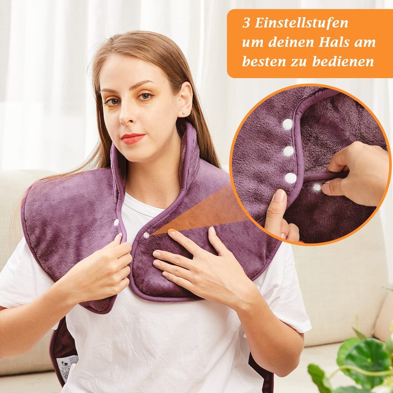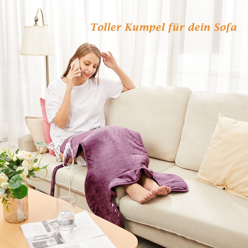 Heating pad for back shoulder neck 60 x 85 cm. Heating pad with automatic switch-off, fast heating, with waist strap, back warmer heating blanket 3 heat levels, auto-OFF timer, flannel material, washable, violet
