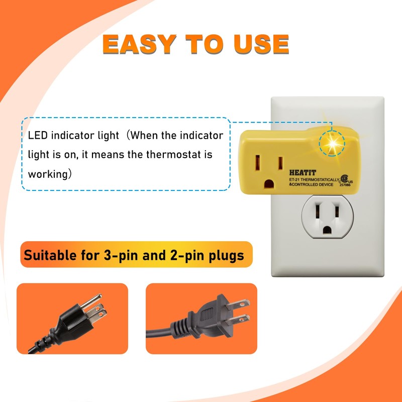 HEATIT ET-21 Freeze Thermostatically Controlled Outlet On at 38F /Off at 50F
