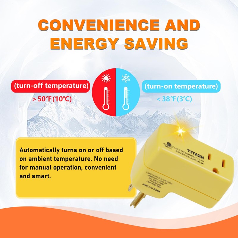 • Energize below 38℉(3℃) and to turn off automatically at approximately 50℉(10℃). Automatically turns power on and off according to ambient temperature. Save energy and save money