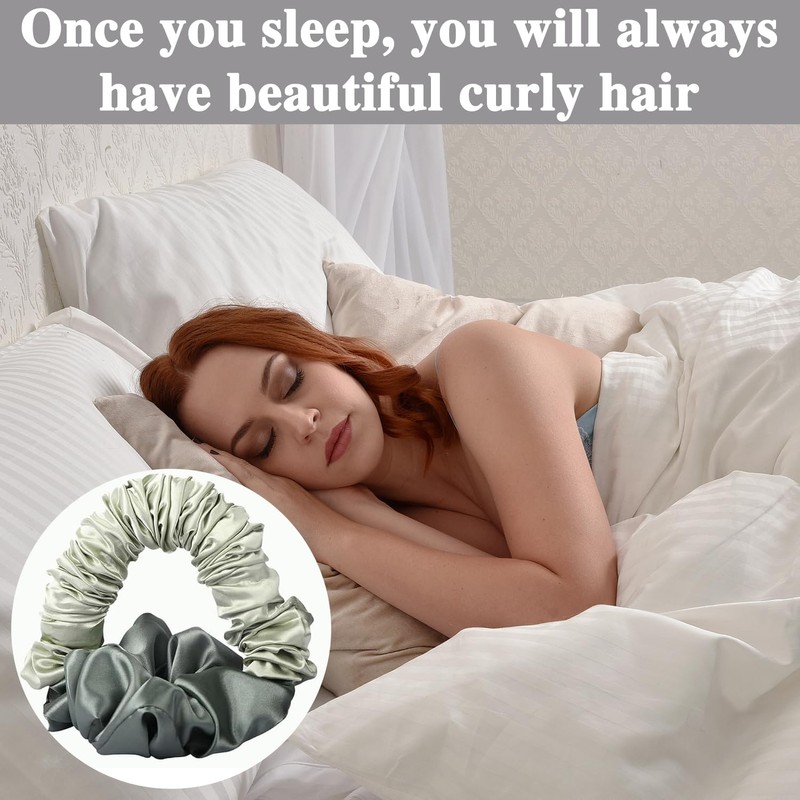 Heatless Curling Silk Scrunchies for Women – Soft Elastic Satin Sleepy Tie Scrunchie, No Crease Hair Ties for Overnight Styling, Perfect for Day & Night