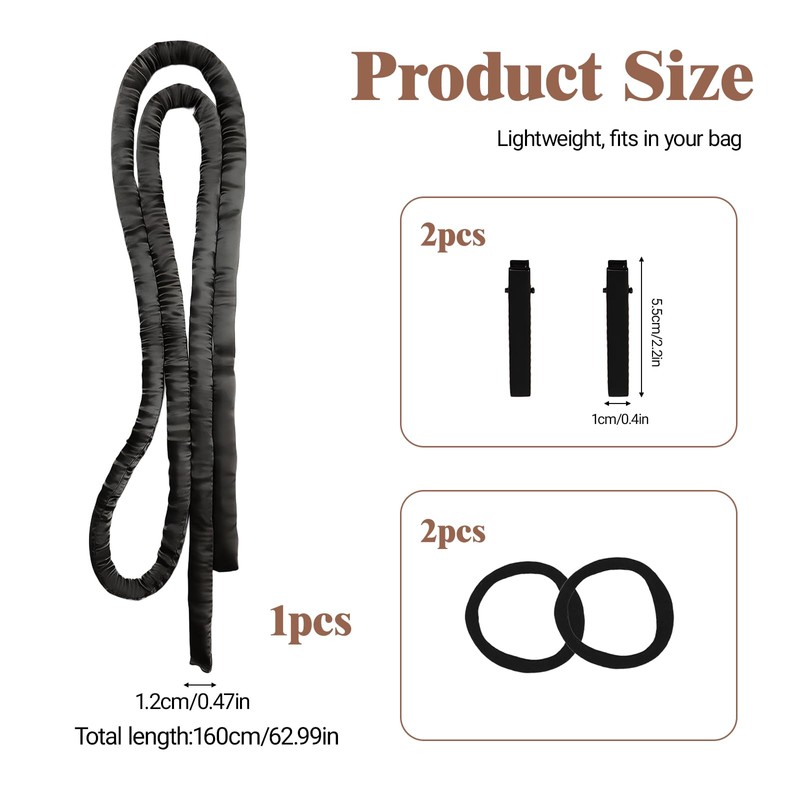 Heatless Curls Band Black Overnight Curls Curls Without Heat Curling Band, Easy to Use, with Hair Ring and Hair Clip, DIY Hairstyle, Suitable for Long and Short Hair