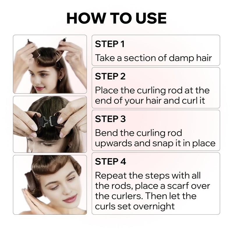 - 🌙 Overnight Comfort and Convenience – These velvet heatless curling rods are designed for overnight use, allowing you to sleep comfortably while they work their magic. Simply wrap your damp hair around the rods, secure with the satin scarf, and wake up to gorgeous, bouncy curls—without the need for styling tools or excessive time spent getting ready.
