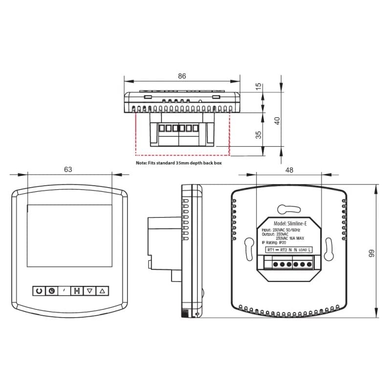 Heatmiser Slimline e Electric Digital Programmable Thermostat with Floor Probe