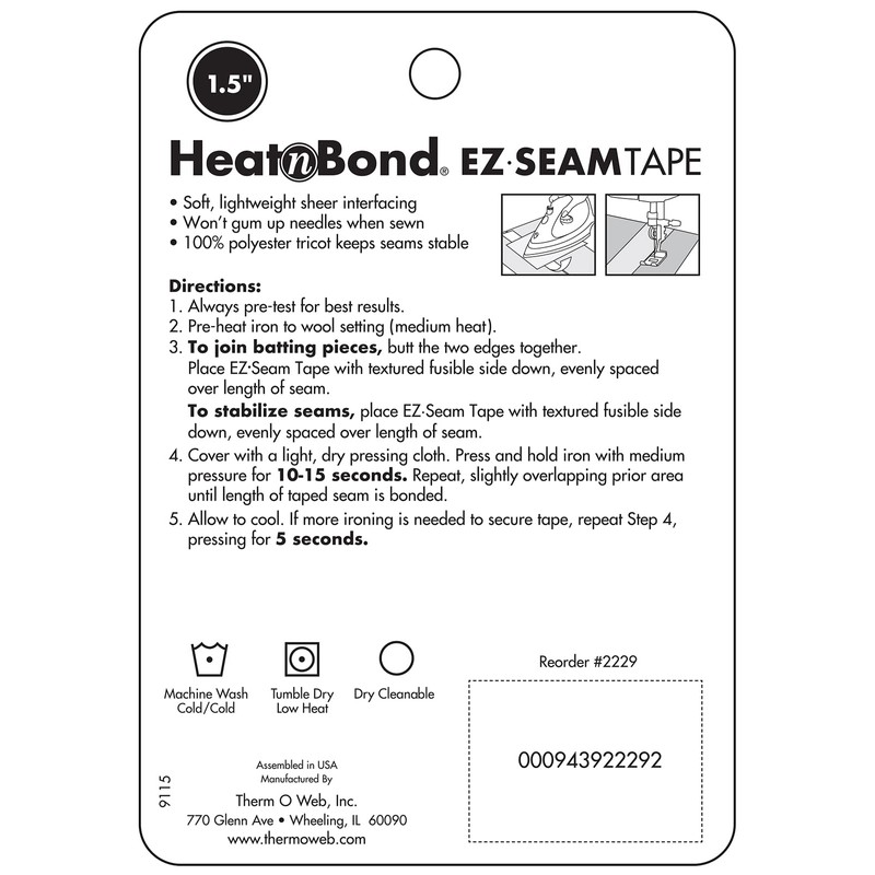 HeatnBond EZ Seam Fusible Batting Tape for Quilt Batting Seams, 1.5" x 15 Yards, White Sheer Seam Tape, 2 Roll Pack