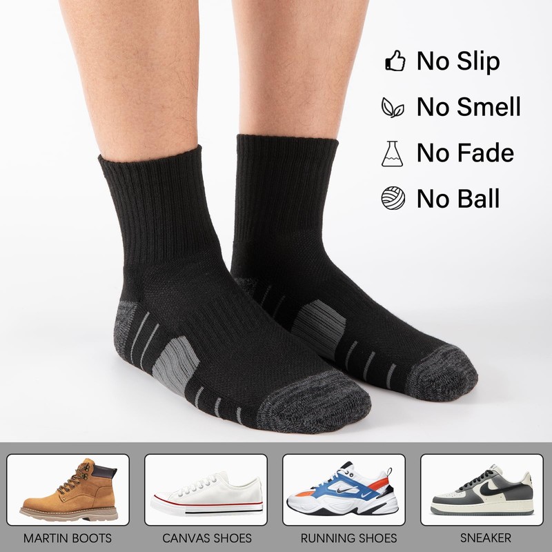 - [REINFORCED HEEL & TOE]:Our socks for men with reinforced heel and toe to enhance durability in high-wear areas for greater durability.These mid socks men are suitable for running, cycling, work, daily walks, training, sports, hiking, etc.