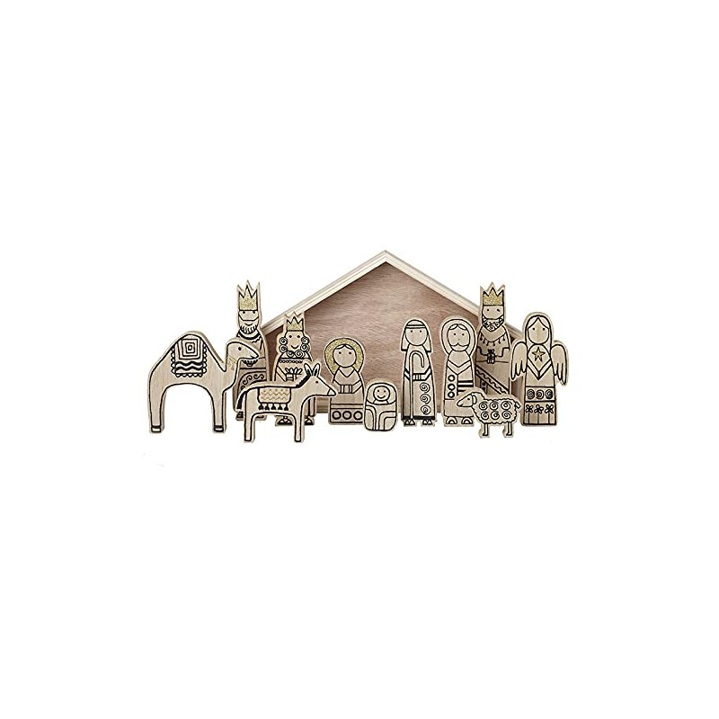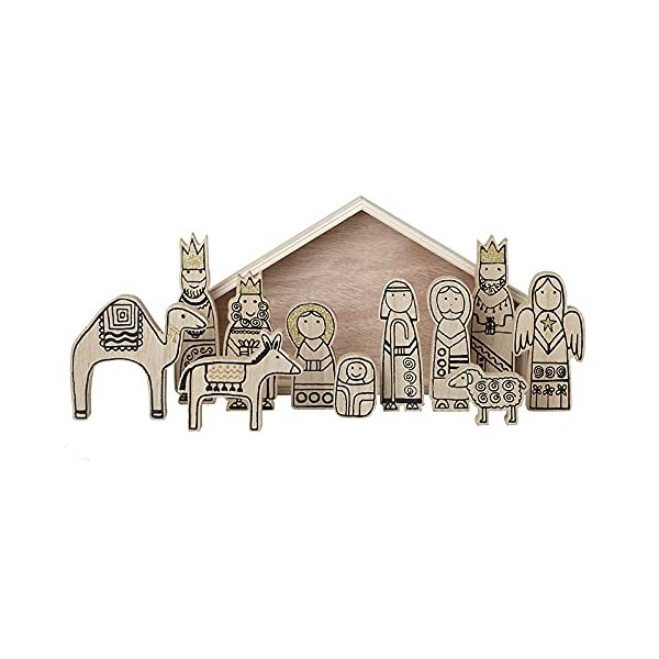 Heaven Sends Traditional Nativity Set - Wooden Figures in wooden stable storage box