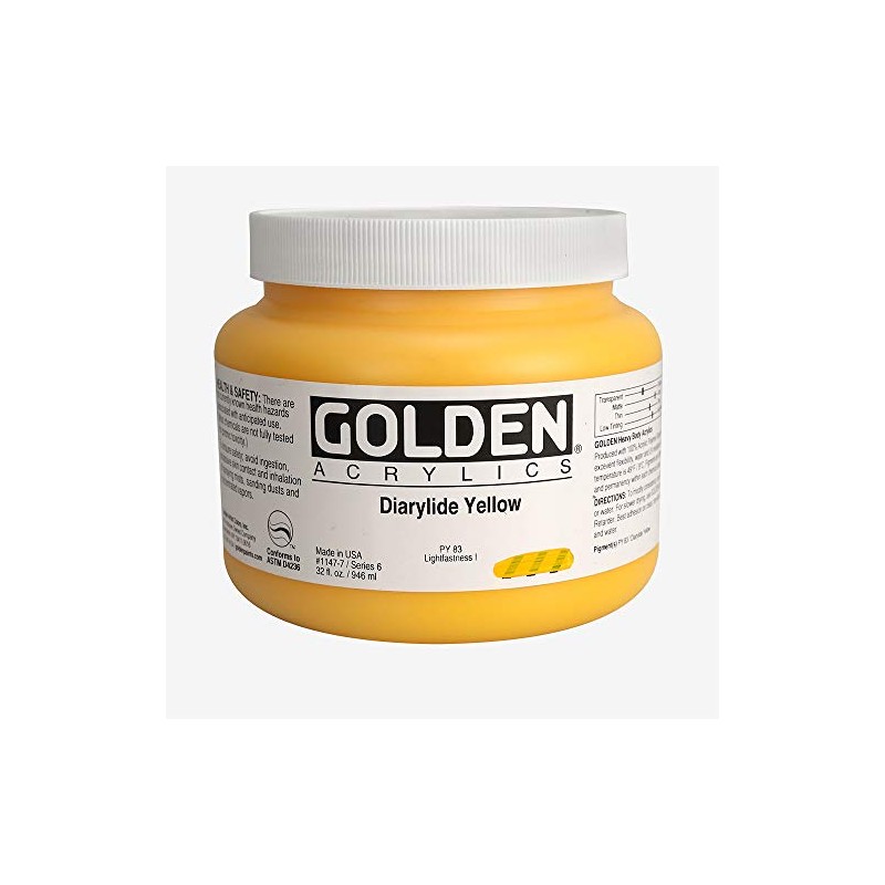 Heavy Body Acrylics by GOLDEN, Diarylide Yellow, 32 fl. oz. Jar, Professional Acrylic Paint, Semi-Opaque