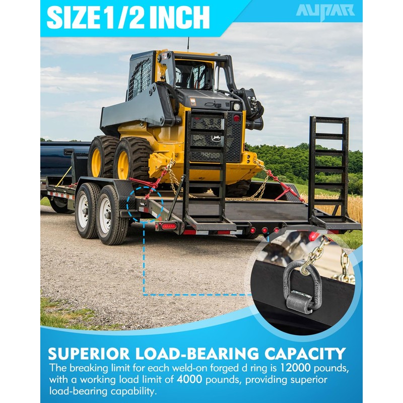 Aupar Heavy Duty 12,000 lbs Weld On Forged D Ring | 1/2" D-Ring with Welding Clip for Trailers and Trucks | 12 Pack
