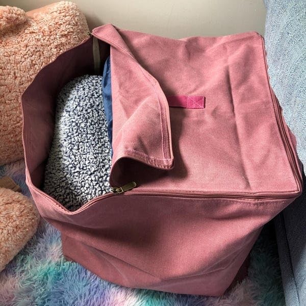 Heavy-duty 18x18x18 Canvas Storage Bag - Ottoman with Zipper, Large Fabric Cu...