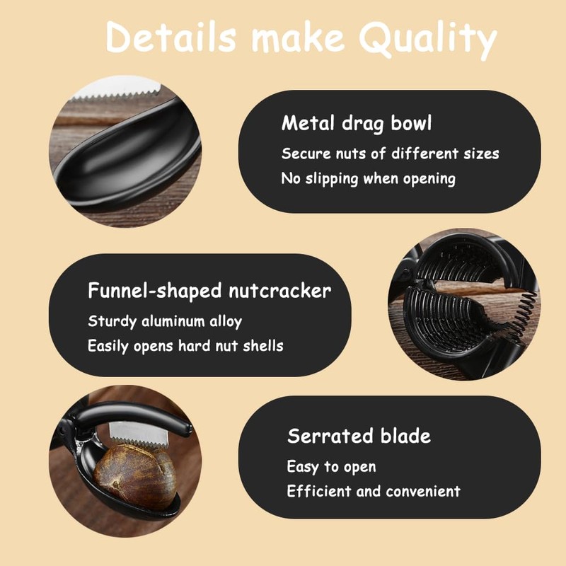 - All-In-One Design: Crack open a variety of nuts with ease using this multifunctional tool, specially designed to handle chestnuts, walnuts, pecans, hazelnuts, and more.
