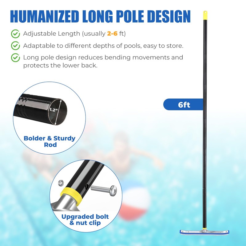 - ✅ RUST-PROOF METAL POLE & ADJUSTABLE DESIGN - Features a corrosion-resistant adjustable pole; perfect for all pool depths without straining your back.