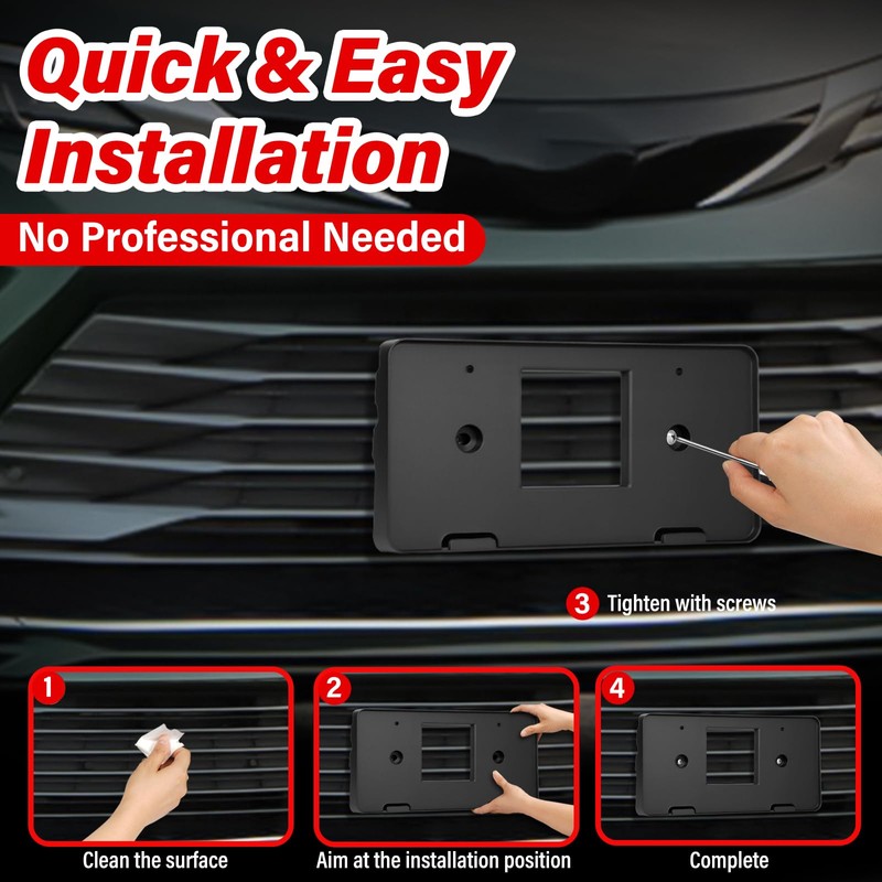 - TOOL-FREE AND QUICK INSTALLATION:Installing our license plate frame bracket is a breeze. Simply use the included screws and the existing mounting points on your vehicle to secure the bracket to the front bumper within minutes – no professional assistance is required. This user-friendly design allows anyone, whether you're a DIY enthusiast or an ordinary car owner, to install the license plate with ease. Enjoy a secure and convenient installation process that saves you both time and effort.