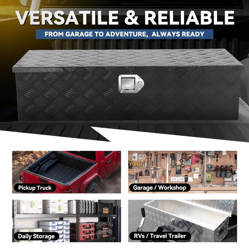 - Vehicle Compatibility - this toolbox that mounts in the truck bed of your vehicle for space-saving storage. You can store all your needs, from maintenance tools to camping equipment, in this truck box and keep everything organized.