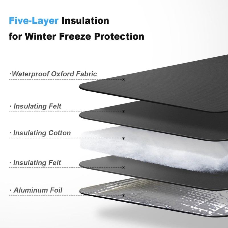 - Heavy Duty Five-Layer Construction: including insulating felt, cotton and aluminum foil, waterproof oxford fabric, this cover can withstand harsh winter environments, offering maximum durability and thermal insulation.