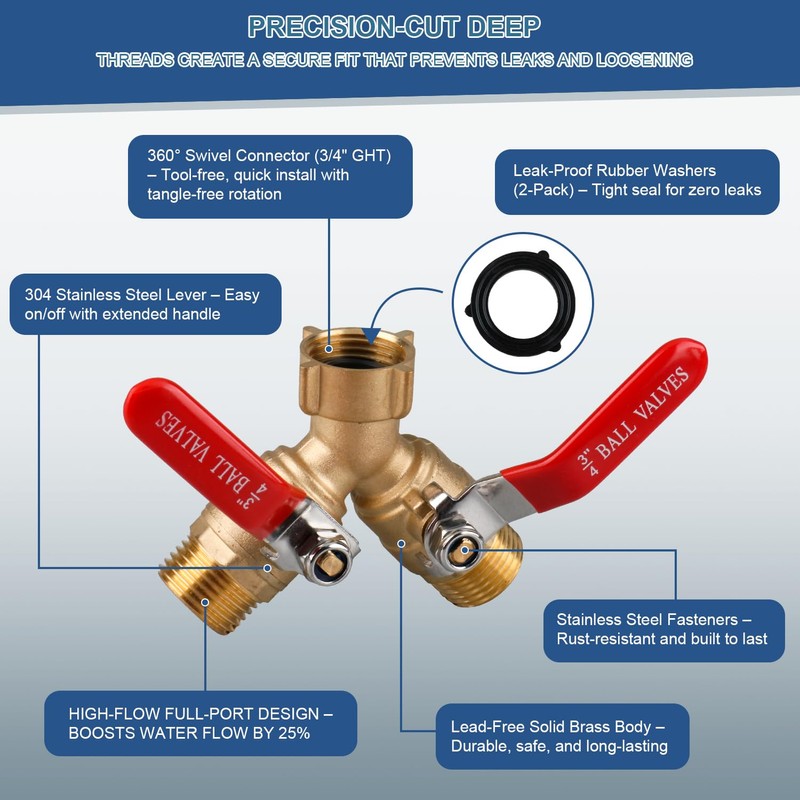 Each splitter undergoes a water pressure test before leaving the factory to ensure leak-free performance. Whether under full flow or shut-off mode, the internal seals and threads provide a secure, mess-free connection.