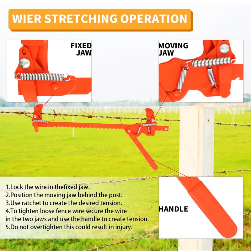 Heavy Duty Carbon Steel Fence Stretcher Tool, All Purpose Wire Tensioner for Barbed & Smooth Wire Fence, Fence Fixer and Splicer for Agricultural, Ranch & Residential Fences