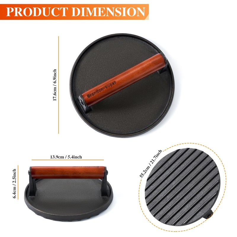 Crafted with super heavy-duty cast iron, this press is built to last. The durable construction ensures that it can withstand repeated use without losing its shape or functionality. Whether you're a seasoned grilling enthusiast or just starting out, this press is the perfect companion for your cooking adventures.