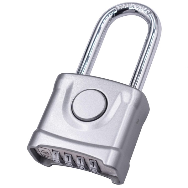 Heavy Duty Combination Lock Strong 4 Digit High Security Solid All Weather Combo Padlock Push Button Release Lock for Outdoor Garden Gate Gym Fence (One Touch Unlocking, Silver, Long Shackle)